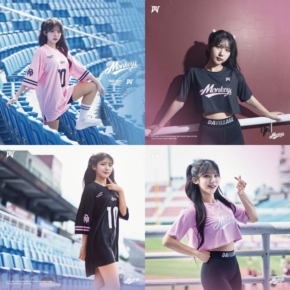 【草寫Monkeys系列】,則是請到了樂天女孩的廉世彬,一向以甜美可愛著稱的她,這回換上美式運動風格,展現了率性俐落的一面。甜美的笑容搭配帥氣中性服裝的反差感,也驚喜了所有球迷。