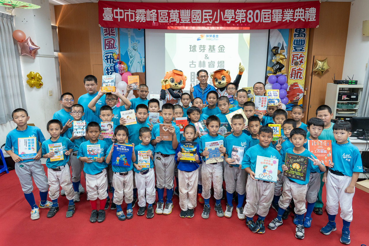 球芽基金長期致力於基層棒球隊的閱讀教育推廣,鼓勵孩子們除了認真追逐棒球夢想,也不忘學習的重要性。昨日(6/11),由統一獅最受小朋友喜愛的吉祥物萊恩與盈盈代表捐贈,與球芽一同前往台中市霧峰區的萬豐國小與四德國小,代表遠在日本北海道的古林睿煬選手捐贈特地為棒球小選手們挑選的閱讀書籍。