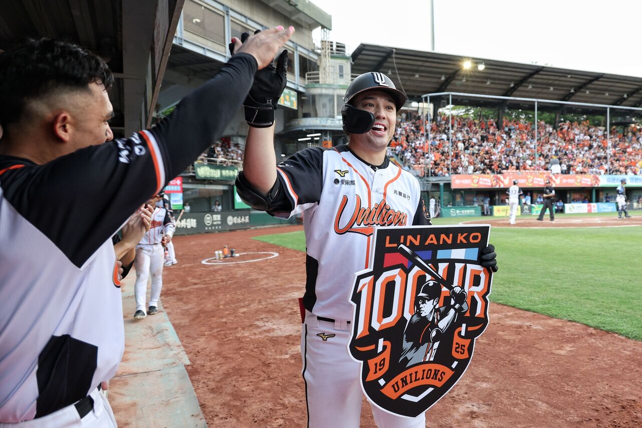 統一獅28日在台南主場迎戰富邦悍將,林安可4局下面對悍將洋投力亞士轟出本季第11轟,並達成生涯百轟里程碑。