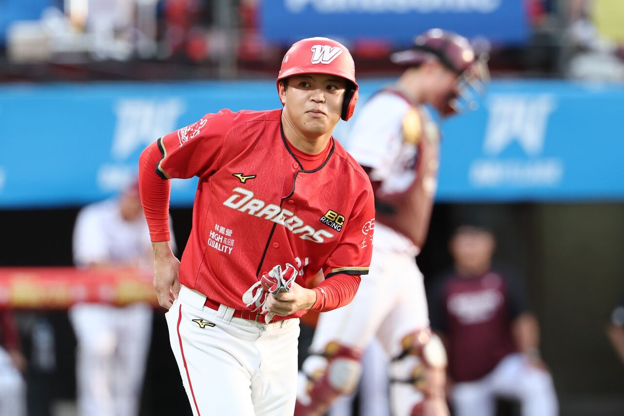 10局下,梁家榮適時安打,打回追平分,1出局一二壘有人,林泓育擊出雙殺打。
