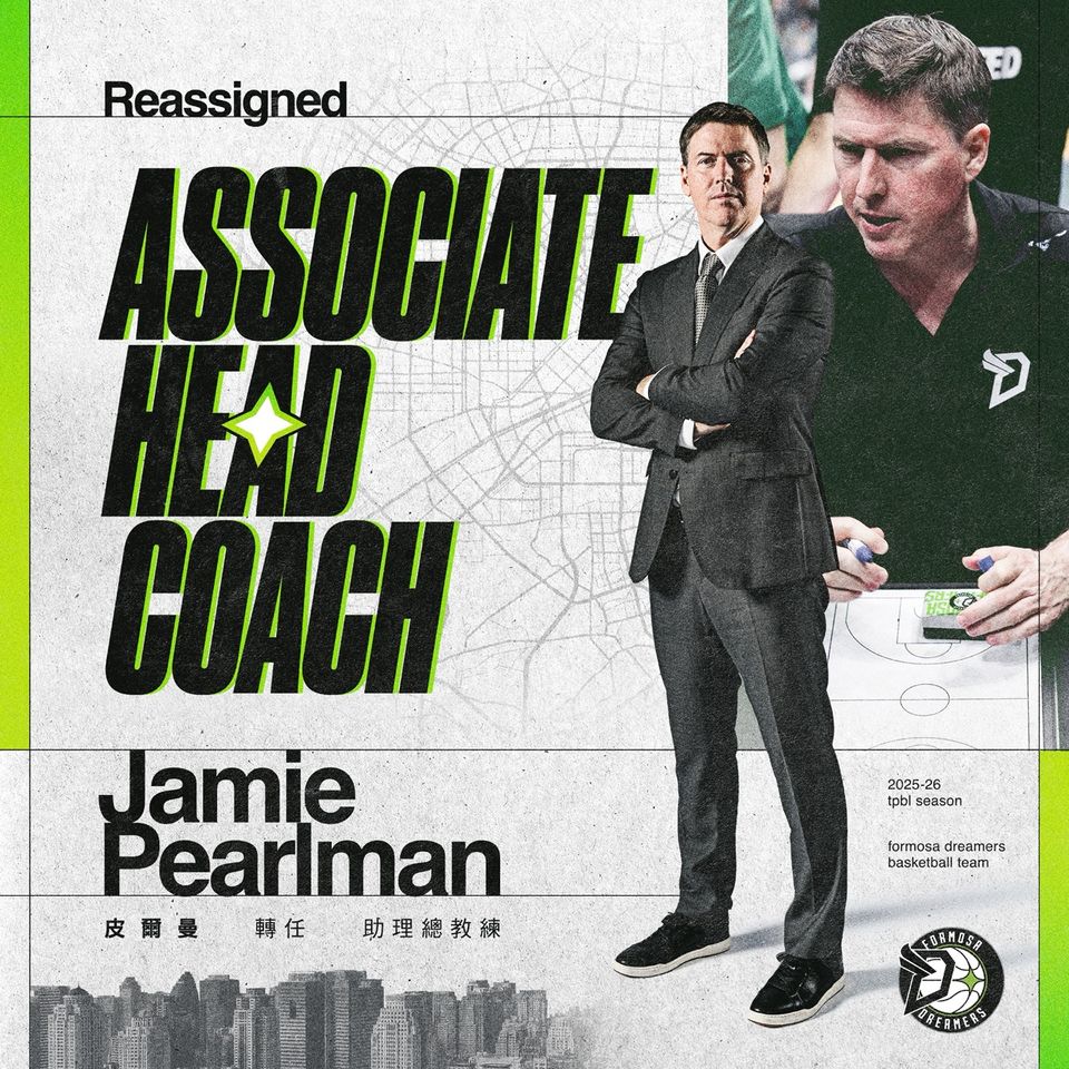 福爾摩沙夢想家本季在TPBL職籃季後賽首輪淘汰出局,教練團也火速做出改變,。球團1日宣布,原總教練皮爾曼(Jamie Pearlman)將於新賽季轉任助理總教練,未來將以新角色持續協助球隊。球團也同步表示,新任總教練人選將在8月中確定,期望盡快完成教練團完整陣容,迎接新賽季挑戰。