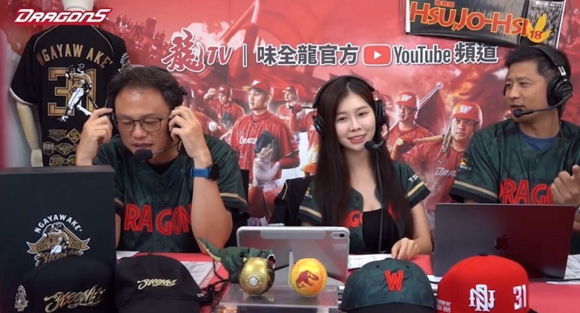 ▲林佳緯緋聞女友賴可(中)登上龍TV見證開轟。(圖/截自龍TV)