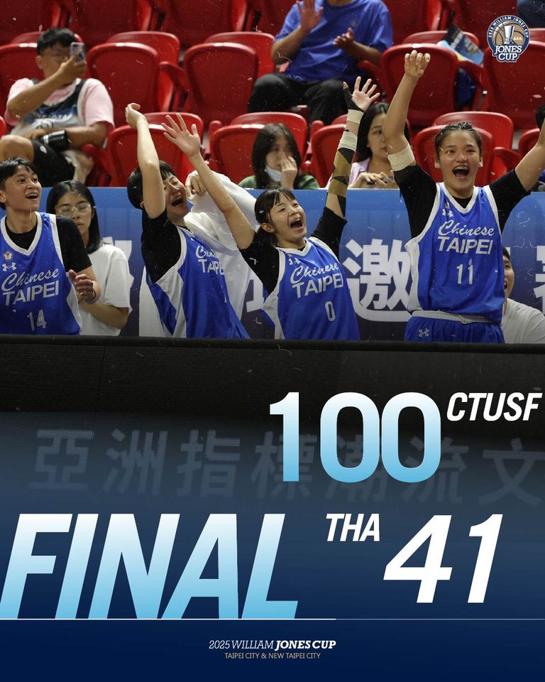 台灣世大運培訓隊今(5)日在瓊斯盃女子組賽事展現驚人外線火力,單場猛砍17顆三分球,防守端更是滴水不漏,次節僅讓對手靠罰球拿下1分,全隊12人皆有得分進帳,終場以100比41狂勝泰國隊59分,收下本屆賽會第2勝。