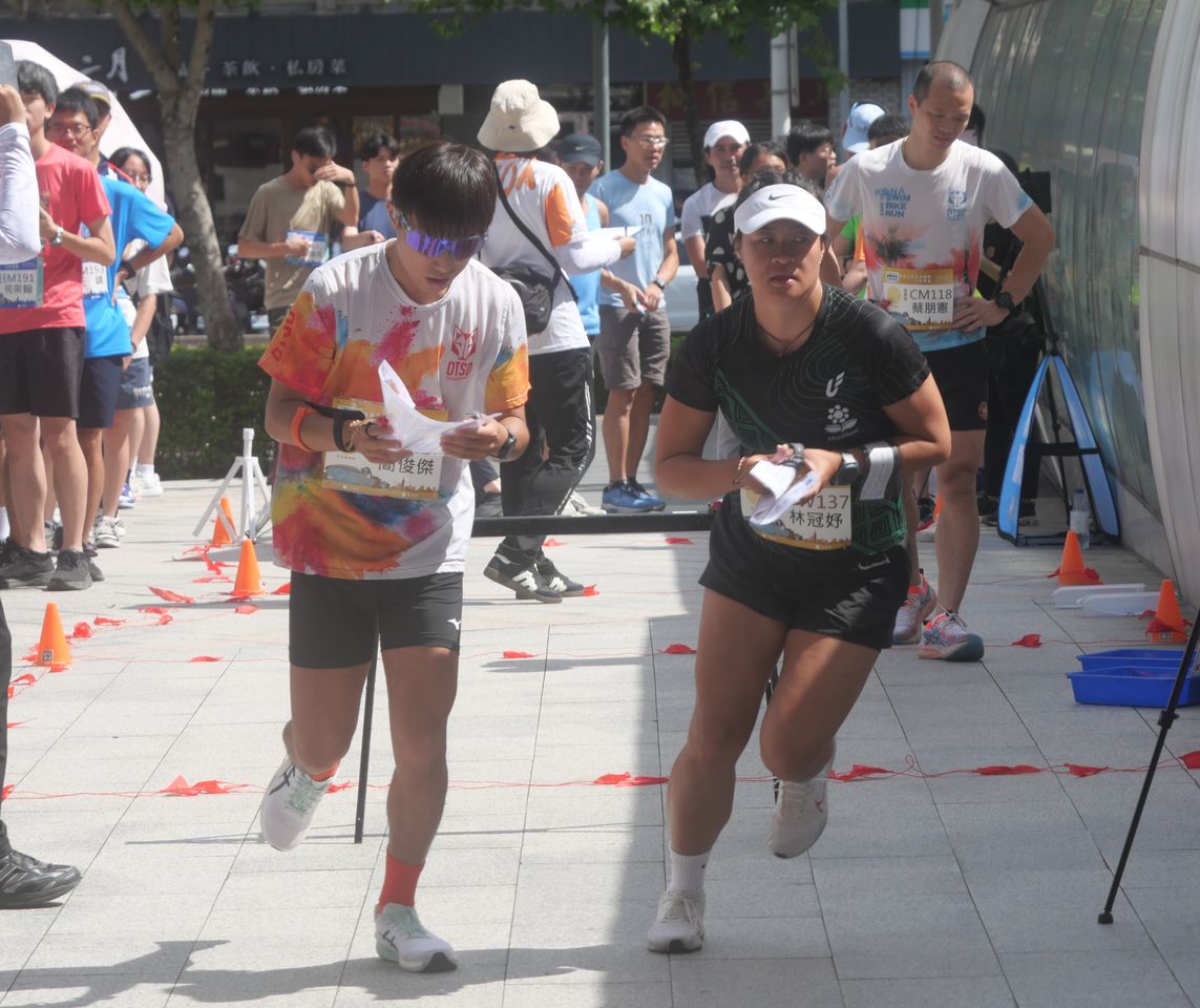 ▲拿徙男女冠軍的簡俊傑(左)、林冠妤剛好同時出發。(圖/中華民國定向越野協會提供)