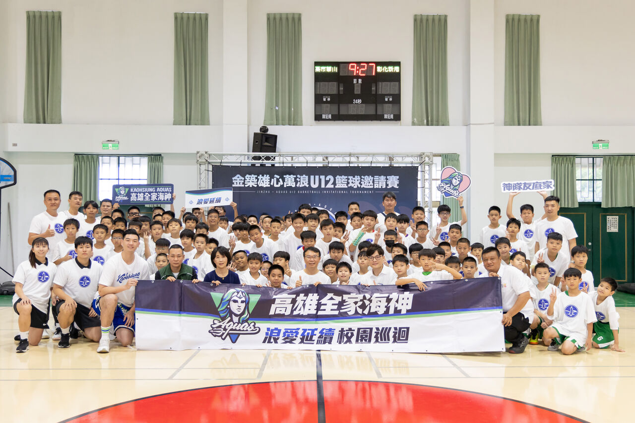 ⾼雄全家海神職業籃球隊16日、17日攜手金築建設,於高雄市小港區華山國小舉辦金築雄心萬浪U12籃球邀請賽,邀請高雄華山國小、獅湖國小、台南九份子國小、雲林鎮南國小、彰化新港國小、台北三興國小共6支隊伍交流切磋,並結合球星籃球教室,由胡瓏貿、吳曉謹、呂威霆、唐維傑、勤明慶、于煥亞、蘇文儒輪番擔任客座教練,讓學員收穫滿滿。
