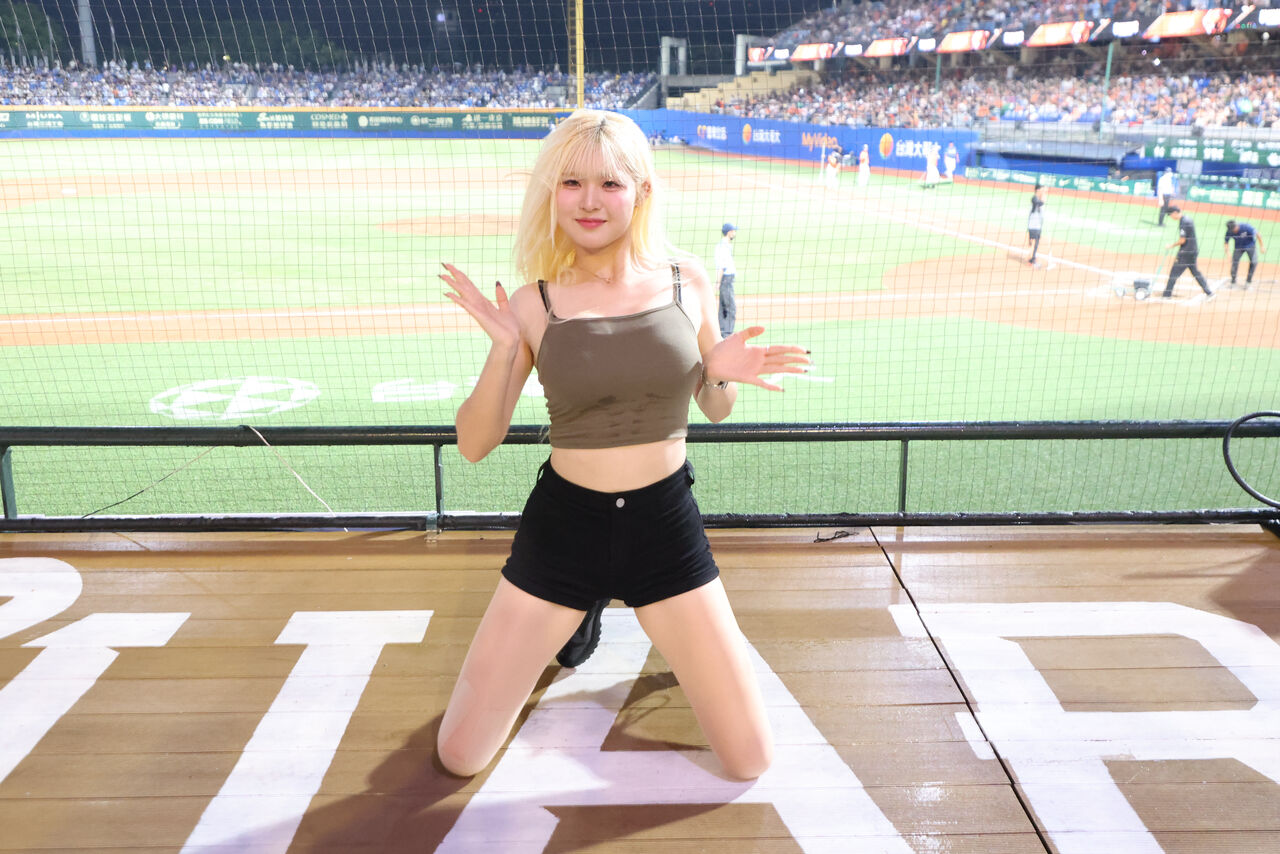 首先登場的是文慧真,懷舊舞曲集錦加上休閒打扮,讓球迷一秒回到復古韓曲時代,她表示,第一次在澄清湖表演是小虎隊的「青蘋果樂園」,這次也選擇韓國懷舊,「希望透過這次的機會讓球迷知道,如果沒有這些前輩,之後也不會有這些Kpop組曲,啦啦隊也無法表演Kpop,想透過這個機會告訴大家前輩們的重要性。」