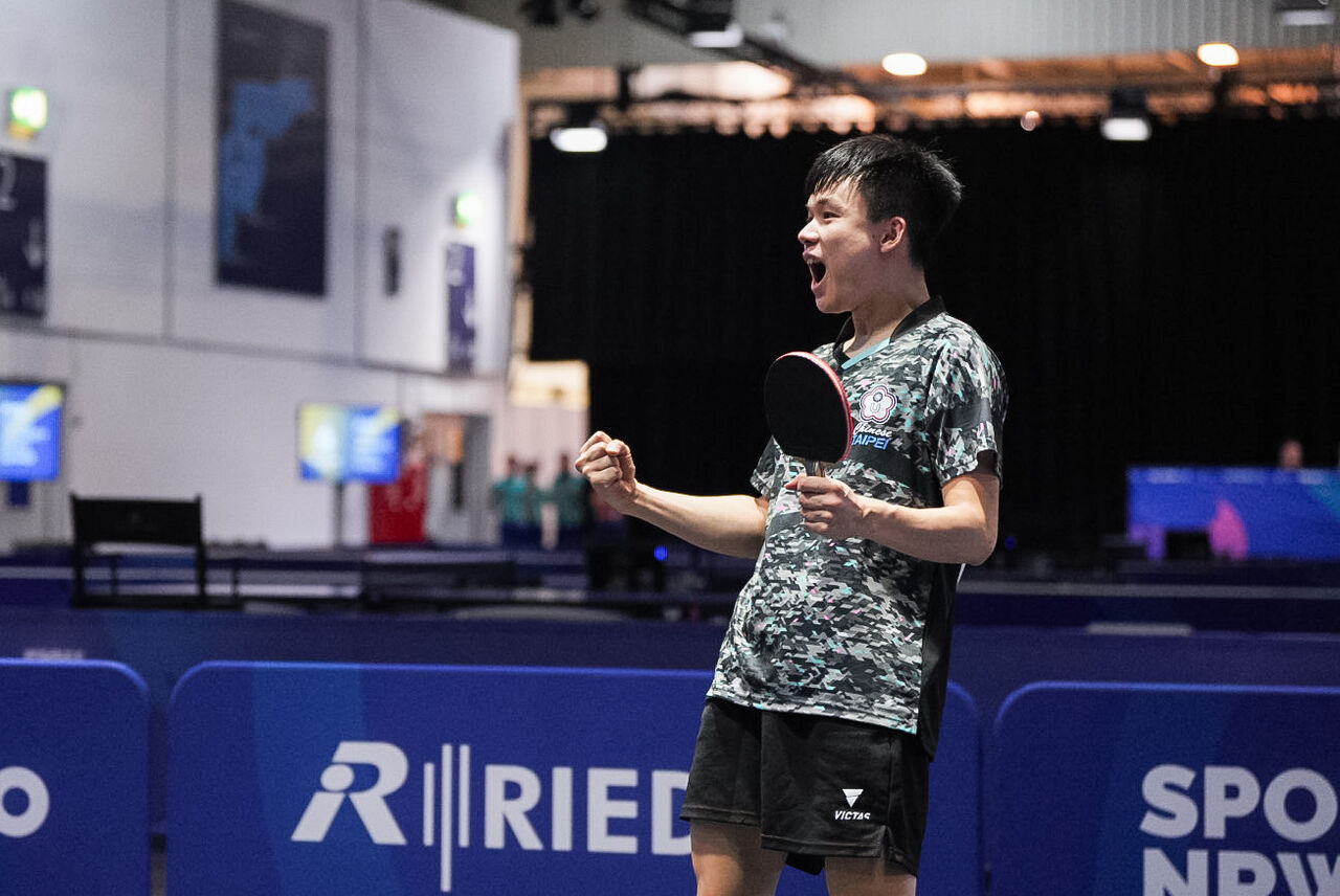 ▲2025年德國萊茵魯爾世大運桌球男團決賽,中華隊贏得歷史性首金。(圖/大專體總提供)