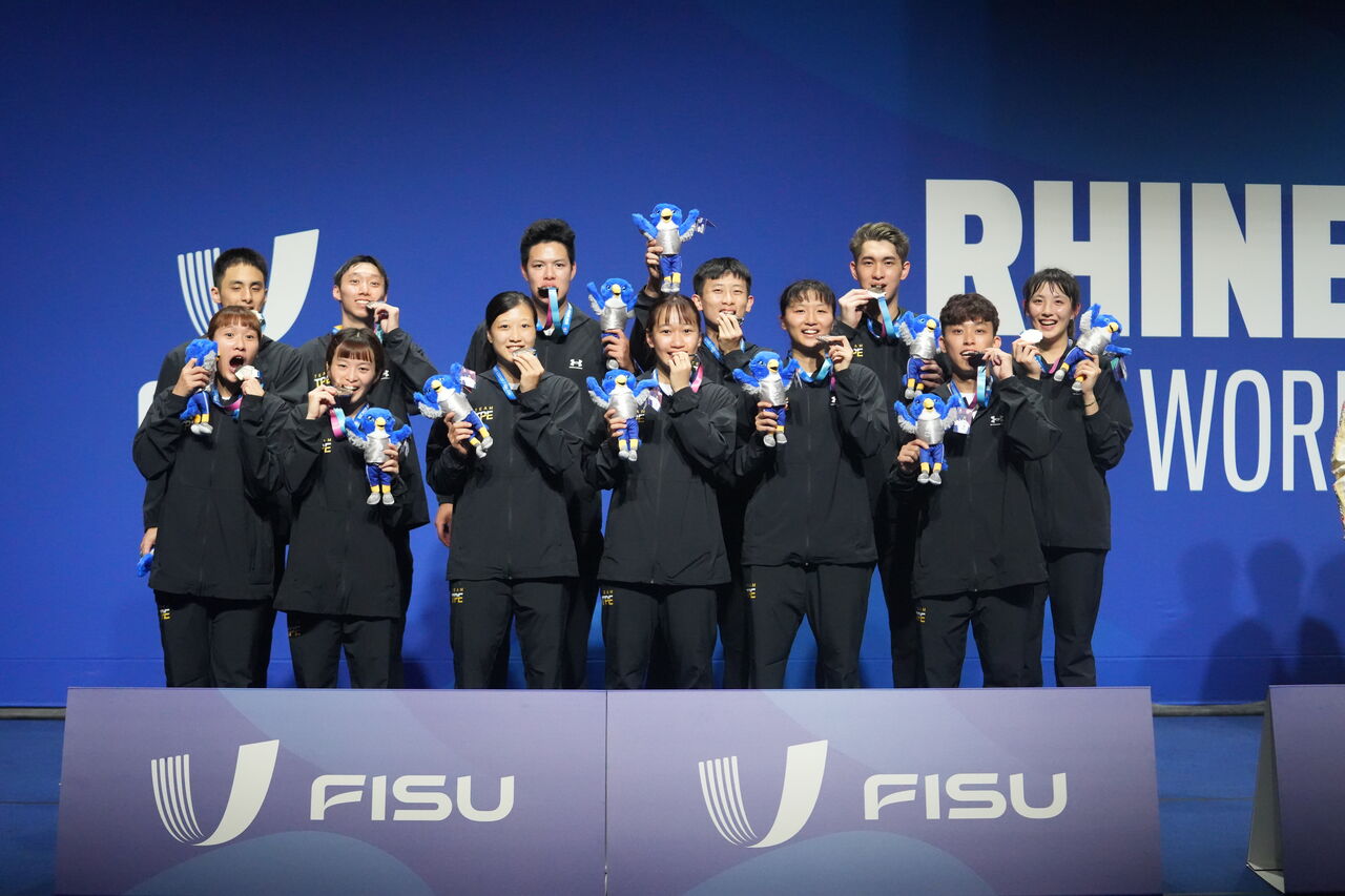 ▲2025年德國萊茵魯爾世大運,中華羽球混團摘銀 。(圖/大專體總提供)