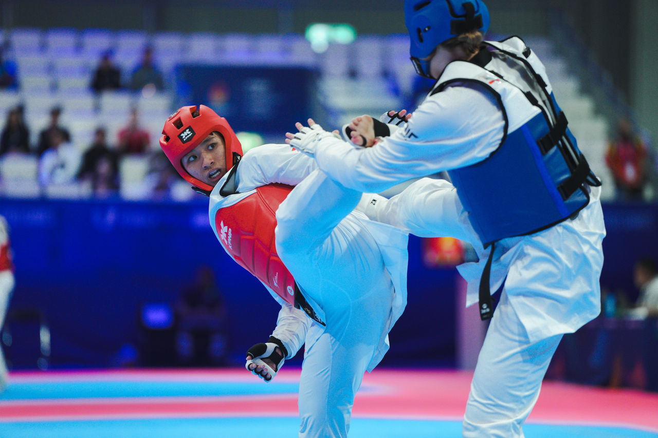 2025年萊茵魯爾世大運跆拳道對打賽事今(21日)持續進行,男子74公斤級的邱義睿晚間在4強賽不敵該量級世界第1的喬治亞名將金楚拉什維利(Zurab Kintsurashvili),收穫一面銅牌,緊接著女子73公斤以上級的布農女戰士金怡君,出戰波蘭頭號種子哈雷姆札(Dagmara Haremza),儘管身高處於劣勢,仍以2比0勝出,搶下金牌戰門票。