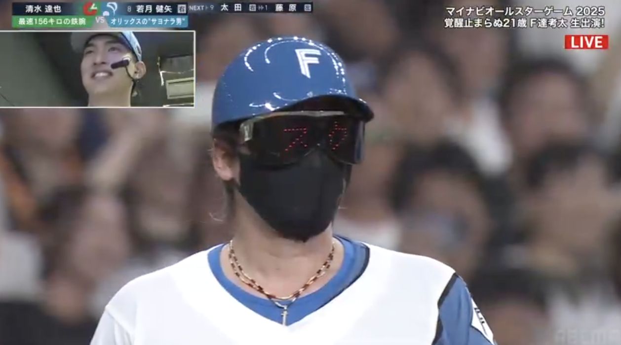 據日媒《體育報知》報導,最吸睛的焦點之一,是擔任太平洋聯盟三壘指導教練的日本火腿監督新庄剛志,他再度以「娛樂至上」的風格掀起話題。比賽第4局進攻時,他戴上特製價值約160萬日圓(約新台幣32萬元)的「電光顯示太陽眼鏡」,並透過眼鏡閃爍出「スクイズ(短打戰術)」的字樣,傳遞戰術暗號,引發全場驚呼,主播台也直接笑翻。