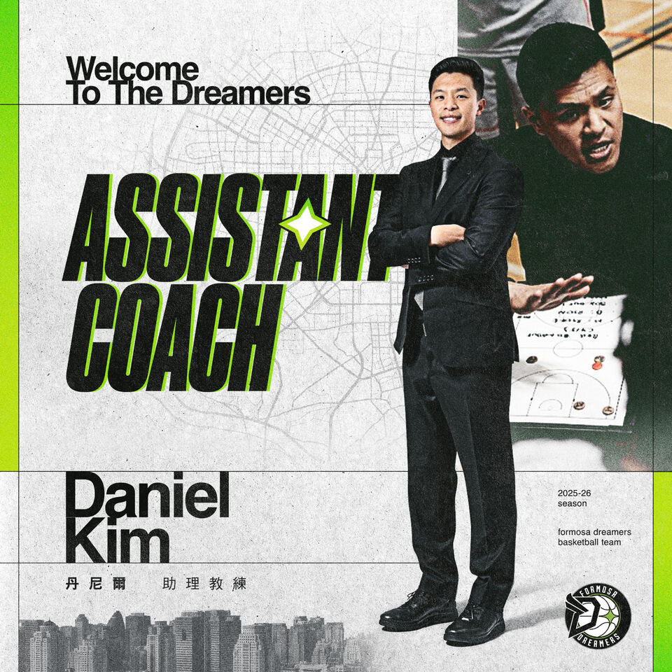 福爾摩沙夢想家今(4)日宣布,教練團隊迎來新成員澳洲籍韓裔的丹尼爾・金(Daniel Kim)將於2025-26賽季擔任助理教練職務。現年34歲的丹尼爾擁有豐富的執教歷練,專精於影像分析及球員發展,預計為球隊教練團帶來更多實戰深度。