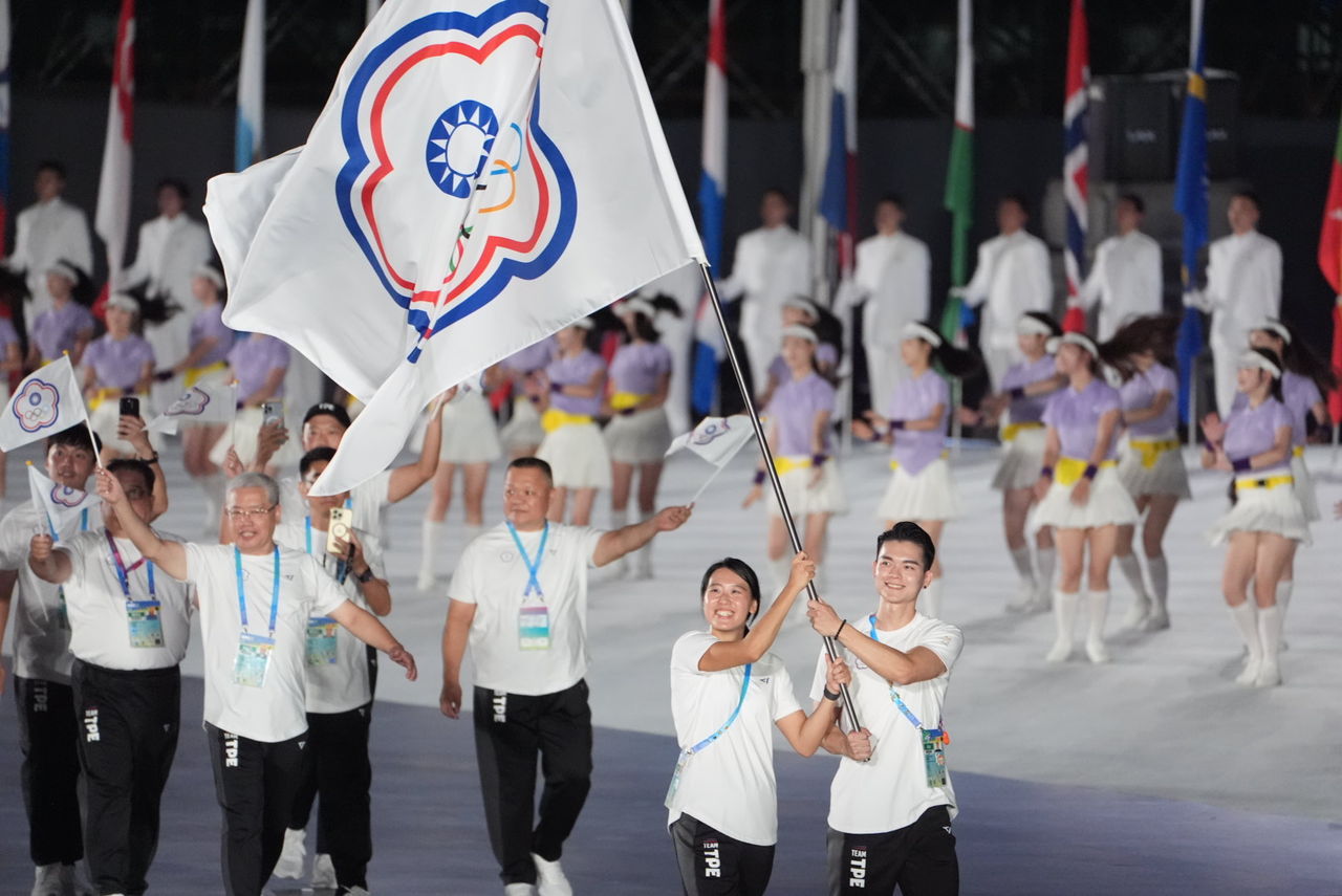 ▲成都世運會開幕,黃渼茜、孫家閎掌旗。(圖/中華奧會提供,下同)