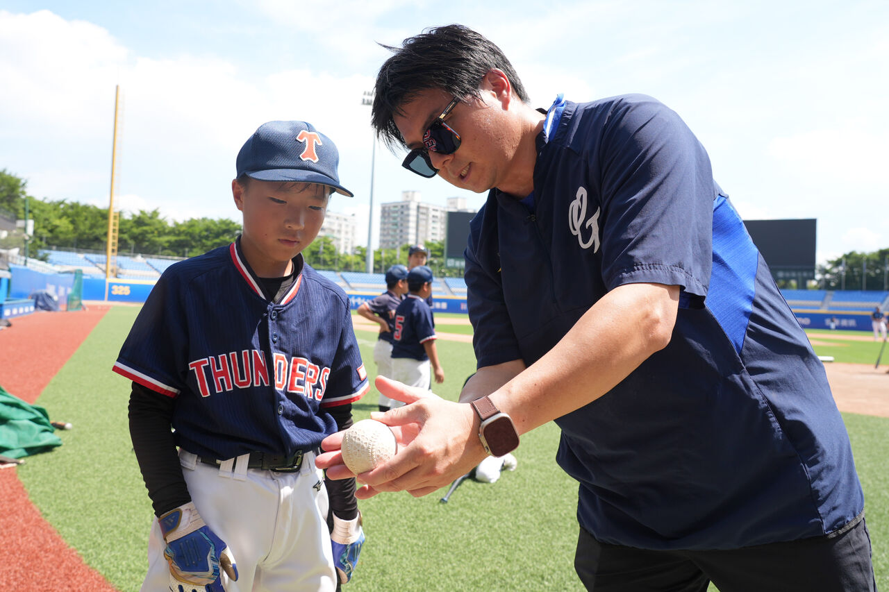 昨晚甫為「虎道同盟」主題日開球的鳥谷敬,今日上午再度與秋山拓巳、林威助合力指導小球員,三人分別帶領進行打擊、守備與投球訓練。鳥谷敬與林威助更親自指導揮棒技巧,一對一協助調整動作;秋山拓巳則分享投手丘上的重心轉移與出手控制,幫助學童提升投球穩定度與爆發力。