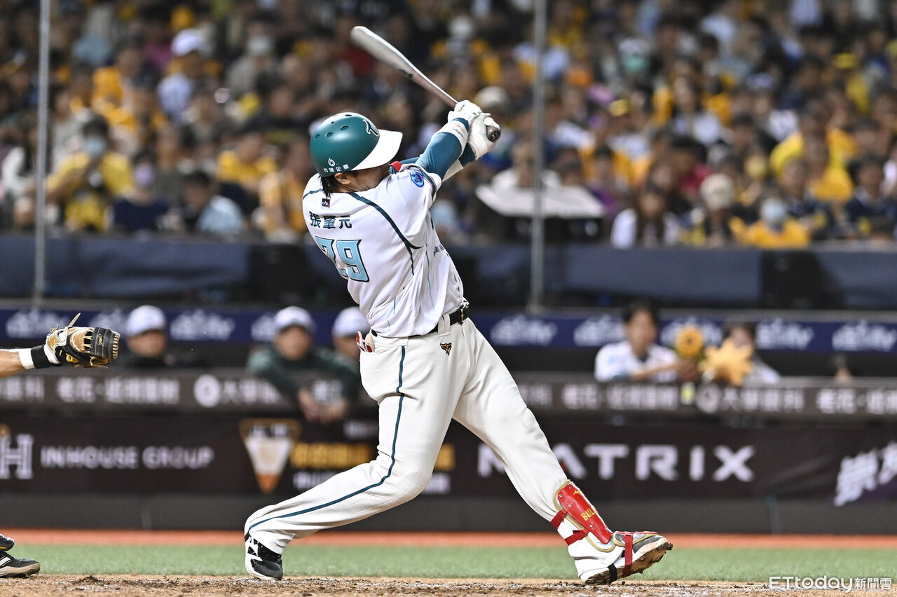 ▲張肇元6局下連打陽春砲,一壘安打,台鋼雄鷹單局灌進6分,5比10擊敗樂天桃猿。(圖/記者李毓康攝)