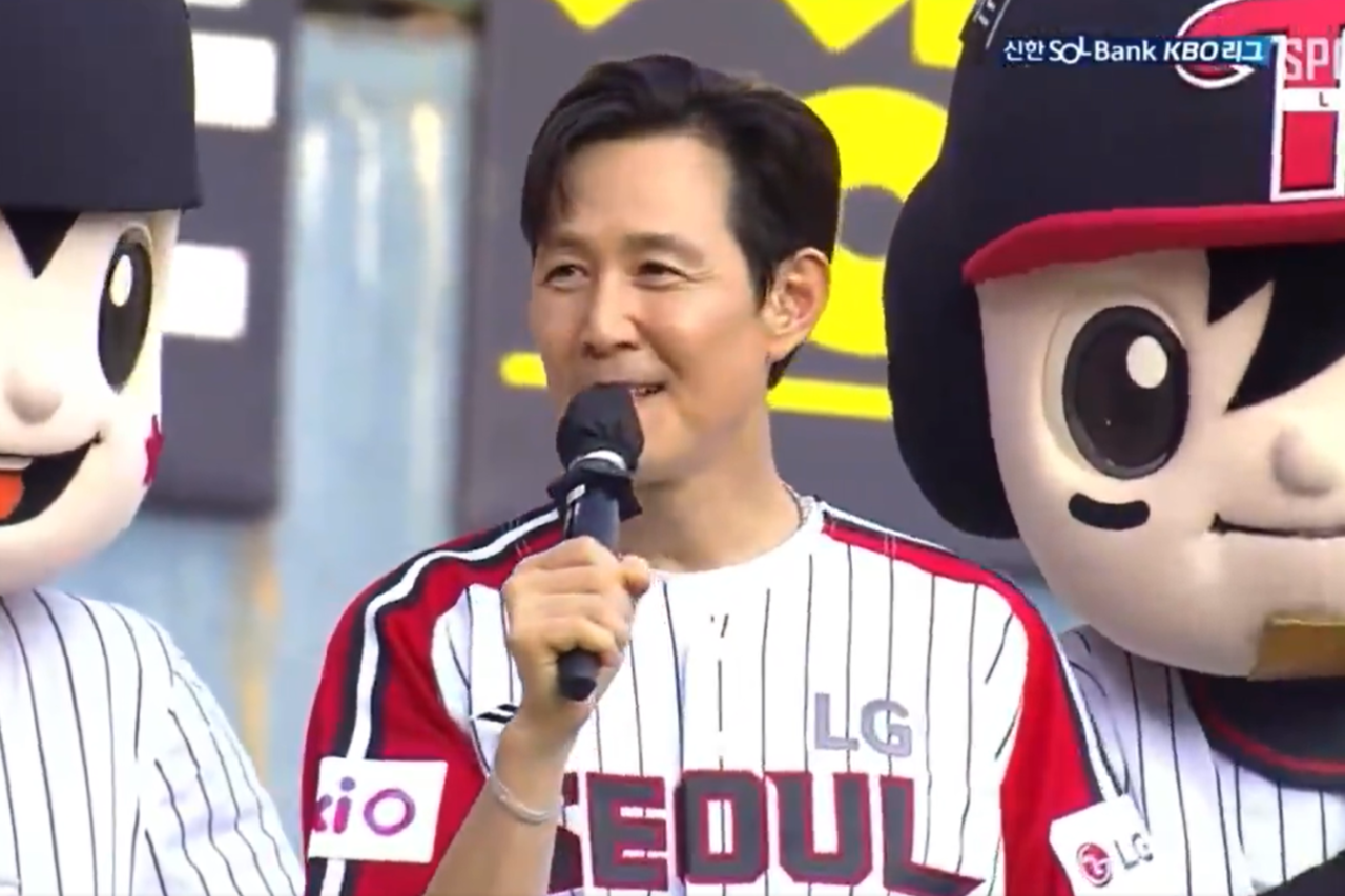 ▲李政宰擔任LG雙子開球嘉賓。(圖/截自SPOTV)