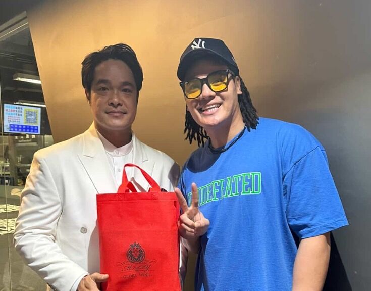▲張育成5日前往臺北大巨蛋送上紅酒禮盒。(圖/截自張育成IG)