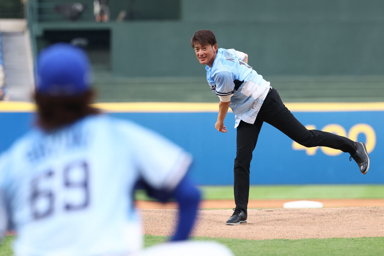 ▲日本名投能見篤史新莊城堡開球。(圖/富邦悍將提供)