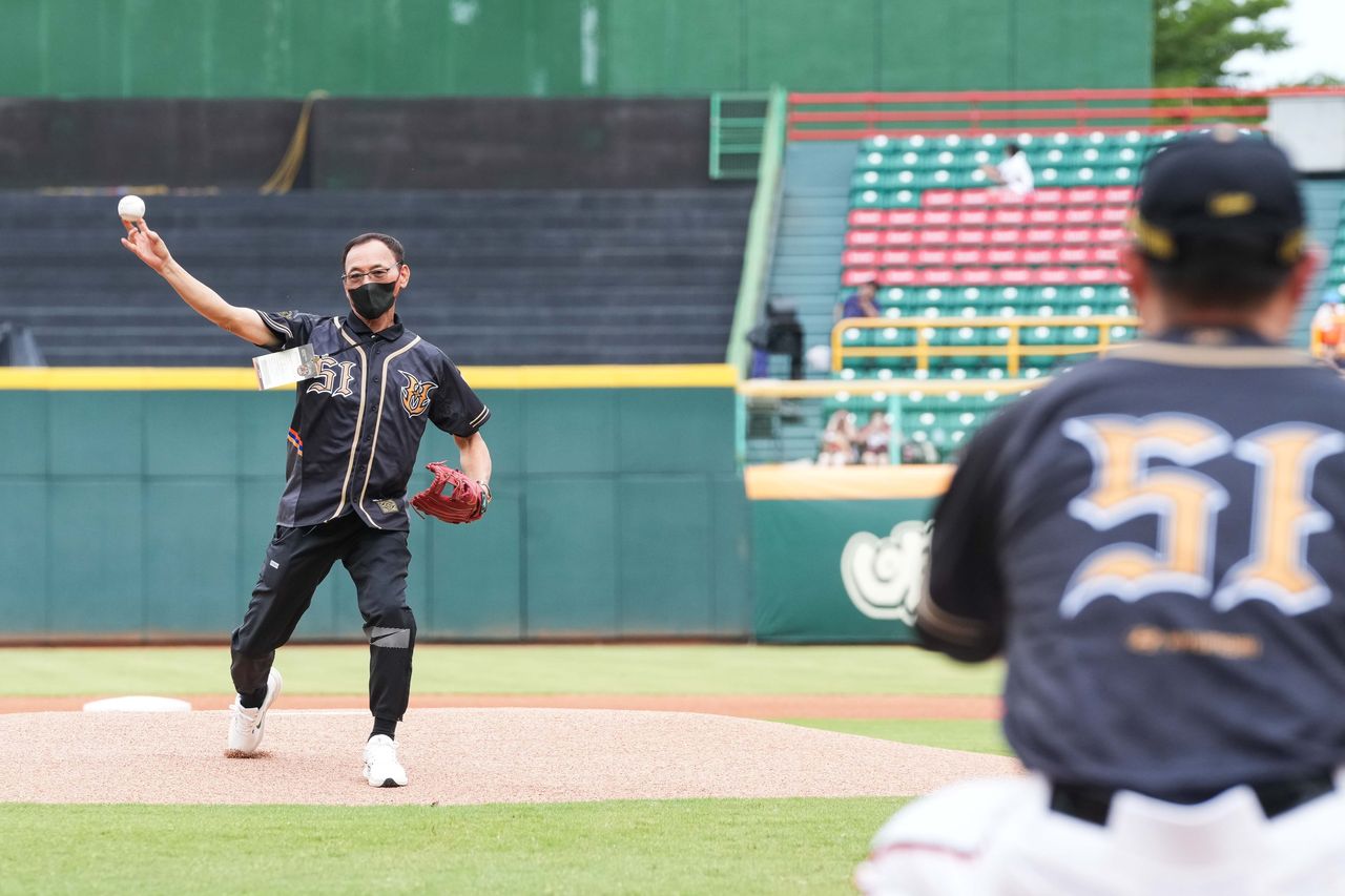 本日賽前開球儀式,也特別邀請南英商工榮譽總教練永遠的牛爸陳献榮擔任開球嘉賓,對胡金龍而言,生涯旅外時期遇到眼睛及肩傷,在棒球的十字路口上,曾經有想放棄打棒球的念頭,因為牛爸陳献榮教練鼓勵,決定返台再試試給自己一個機會,也因此加入中華職棒效力,展現好球技回饋給台灣家鄉棒球迷。