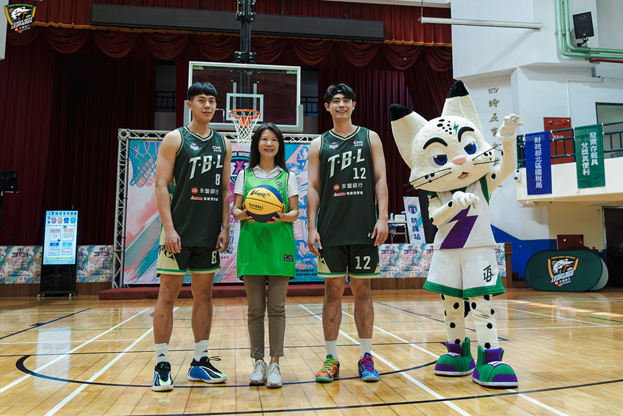 台啤永豐雲豹今(20日)攜手財政部北區國稅局,在新北市板橋江翠國小四秀館舉辦「熾熱青春 三對三籃球鬥牛賽」。這場賽事不只推廣籃球,更融合雲端發票宣導,邀請民眾體驗租稅教育新方式。開幕由雲豹主場MC星岑熱情主持,現場「浪LIVE電豹女」小楓、草莓、瑄瑄以經典應援詞「豹豹豹豹豹」炒熱氣氛,讓觀眾情緒瞬間沸騰。