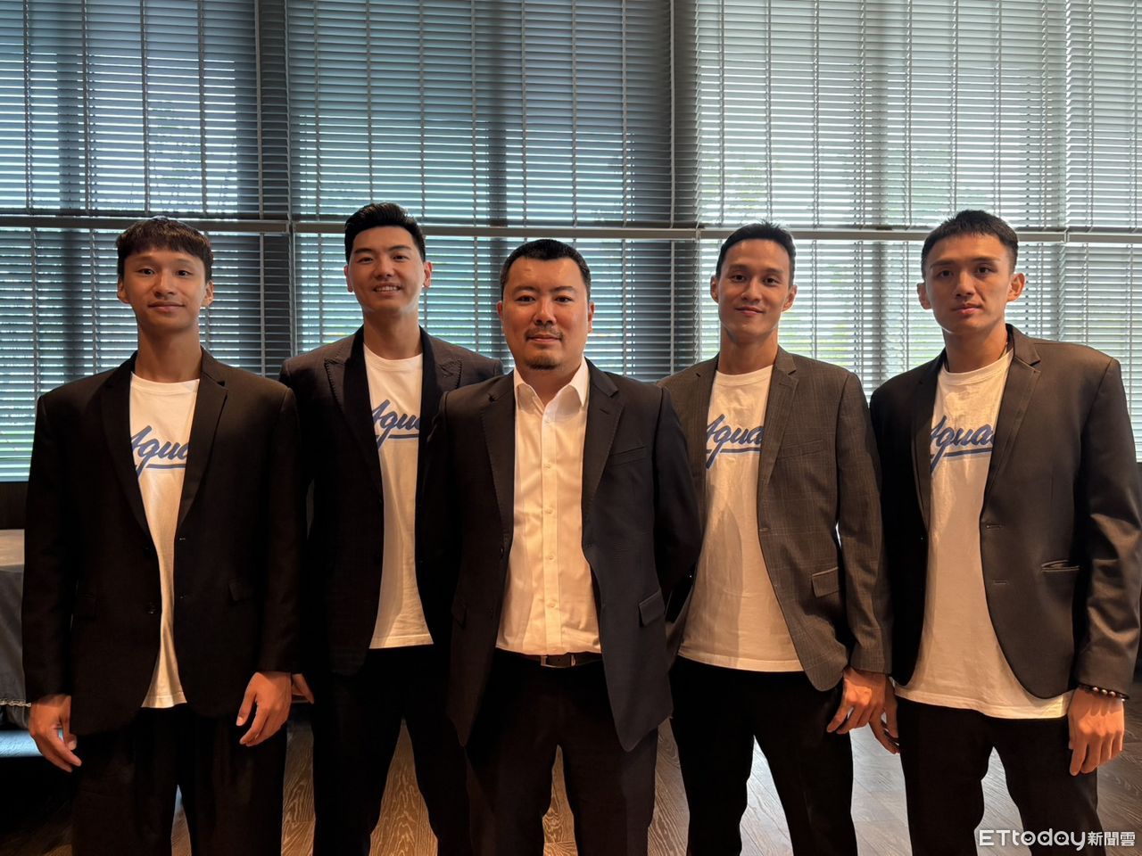 ▲高雄全家海神執行長李偉誠(中),球員左起依序為胡瓏貿、蘇文儒、施晉堯、余純安。(圖/記者杜奕君攝)