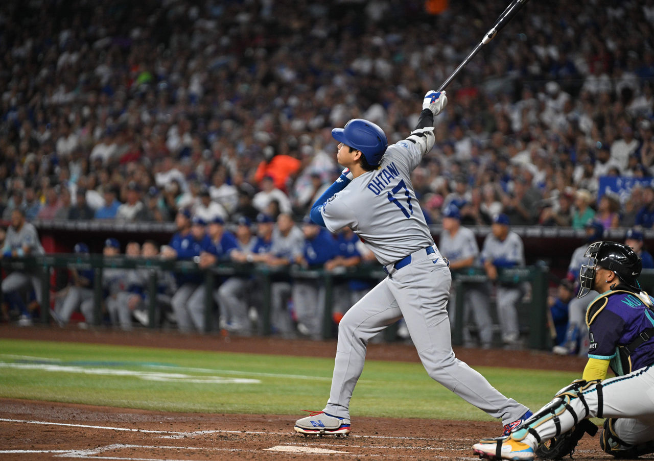 洛杉磯道奇當時以4比0領先,在4局上1出局三壘有人時,被響尾蛇投手克里斯麥特(Nabil Crismatt)低角度變速球引誘重心前傾,但仍靠著右手單手一撈,將球掃向右外野,白球直接飛進主場名物「泳池」中,現場隨即響起MVP呼喊聲,大谷則神情自若地繞壘。