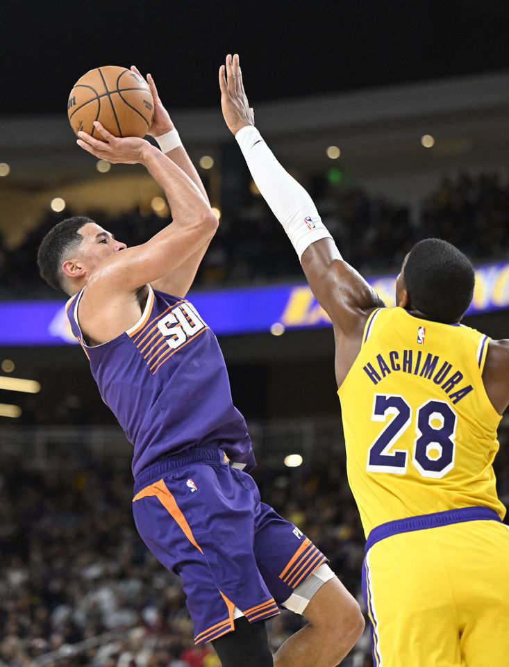 ▲太陽布克轟下24分、7助攻,領軍熱身賽首戰狂勝湖人。(圖/路透)