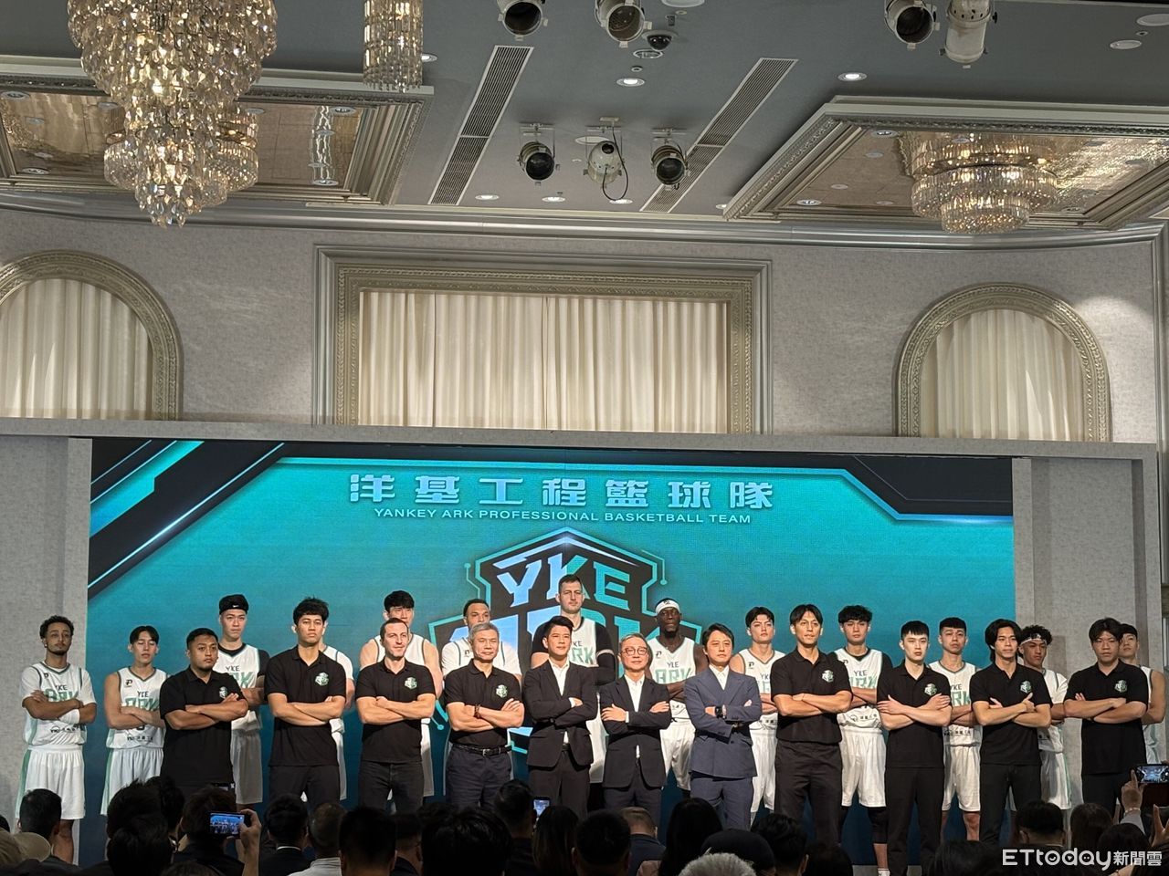 ▲洋基工程籃球隊以「洋基方舟」為隊名,全體隊員與教練團正式亮相。(圖/記者杜奕君攝)