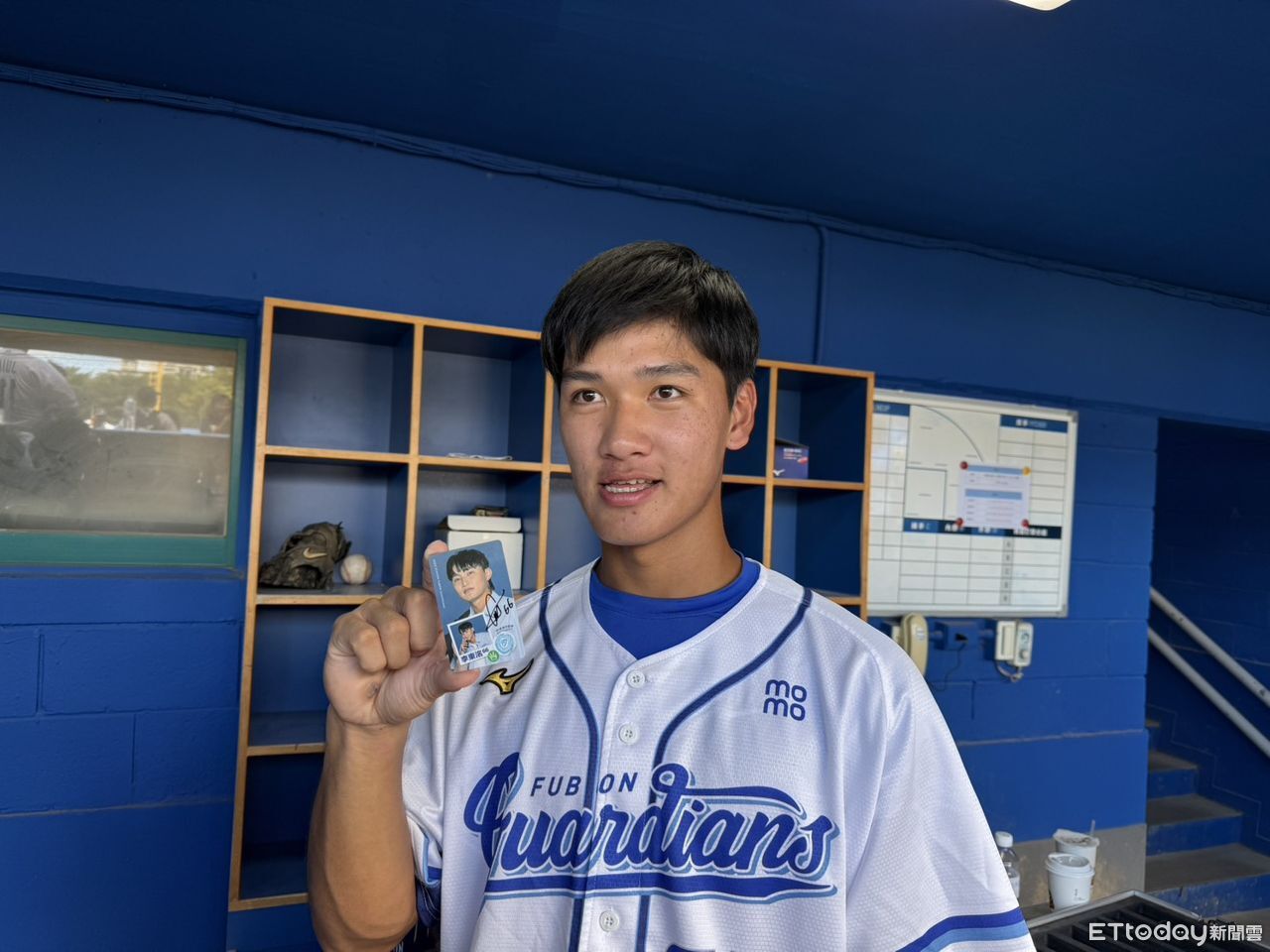 話音未落,劉承佑馬上從褲子口袋拿出在悍將中學主題日抽到的盲包,裡面有學長李東洺的卡片,他透露之前已在二軍遇到他時請他簽名,Fubon Angels栗子的卡片則是剛要到的簽名。
