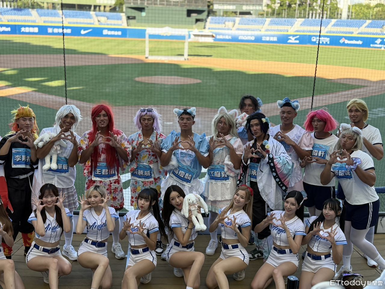 富邦悍將球迷感恩會今(18日)在新莊球場熱鬧登場,今年「悍將菜鳥日」以cosplay為亮點,球隊新秀們化身為「Fubon Angels」造型登場,穿上各式女僕裝、浴衣與校服等華麗服裝,在球迷歡呼聲中展現不同於球場的魅力。