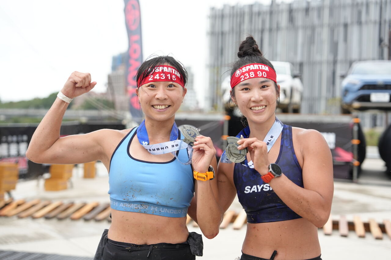 女子組銀牌由「最美警花」謝伯韶以1小時13分55秒拿下,她已連續9年參加斯巴達障礙跑,見證賽事成長。謝伯韶笑說自己掌心的繭破了、四頭肌也痠痛,「昨天天氣太熱,影響後續體能,今天下雨反而舒服多了。」她認為推廣「小勇士」活動有助激勵孩童勇於挑戰,也讓大人更有動力持續努力。