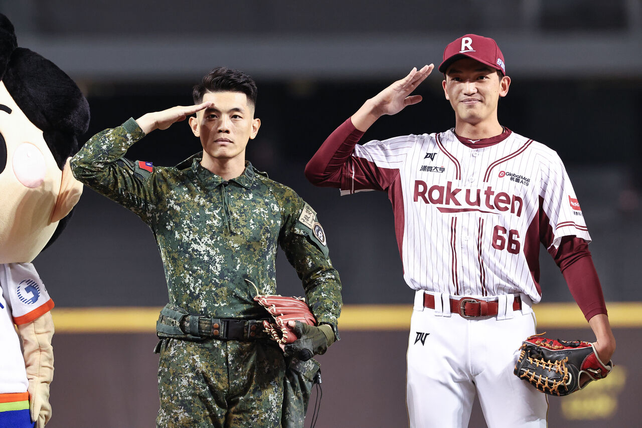為感謝國軍在災害期間的辛勞奉獻,陳士官長在踏上投手丘前,先莊重地將國旗臂章配戴於右臂,隨即戴上手套完成開球,現場響起熱烈掌聲,場面感人。家鄉在花蓮的何品室融擔任開球捕手,也一起敬禮致敬。