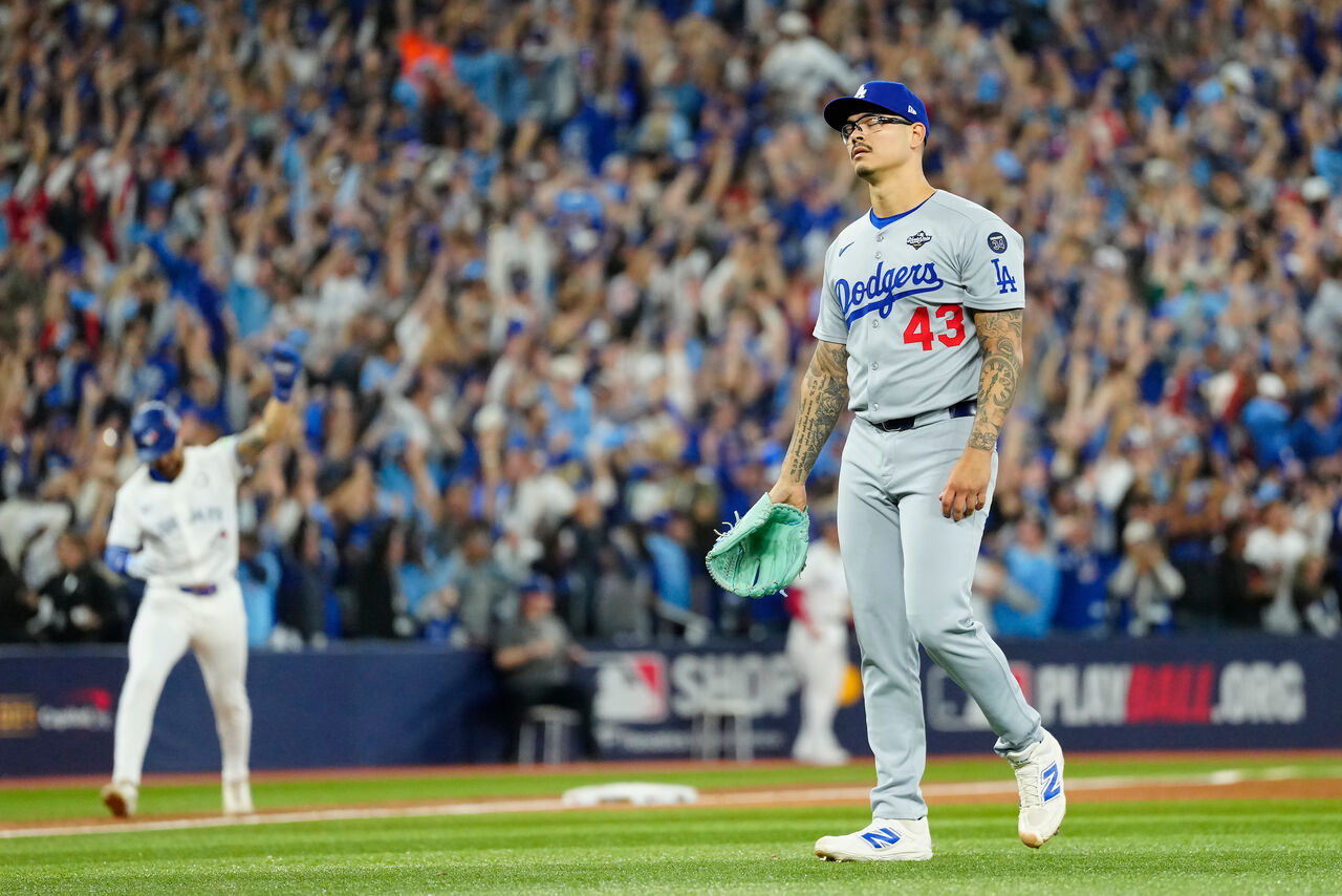 第三任投手班達(Anthony Banda)上場後情況更雪上加霜,面對代打巴傑(Addison Barger)被轟滿貫砲,隨後又遭柯克(Alejandro Kirk)炸出兩分砲,道奇單局被打爆。