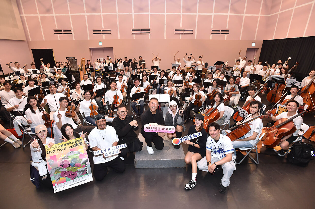 2025台灣大哥大日月潭花火音樂會將於本週六(11月1日)晚間登場。進入倒數時刻,由藝術總監江靖波帶領、75位音樂家組成的「樂興之時管絃樂團」,緊鑼密鼓彩排25首中西流行曲目。