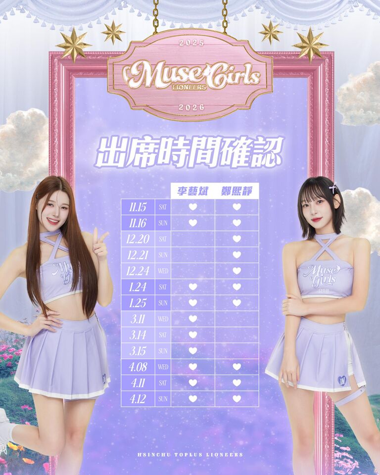▲Muse Girls韓援李藝斌與鄭熙靜將於11月15日主場開幕戰首秀。(圖/攻城獅提供)
