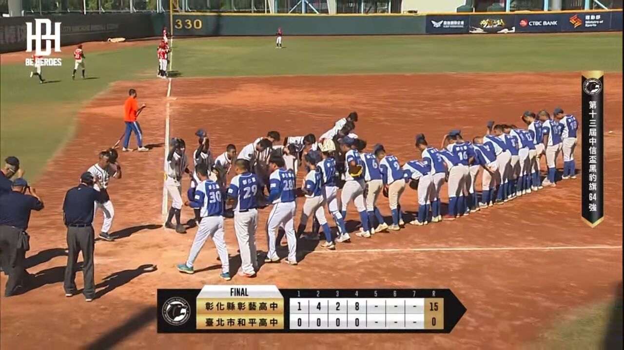 中信盃黑豹旗9日在三重棒球場進行64強賽事,彰藝高中展現強大火力與投打均衡的團隊戰力,在比賽中不斷上演猛烈攻勢,最終以15比0擊敗和平高中,依據大會4局15分差扣倒規則提前結束比賽,順利挺進32強。