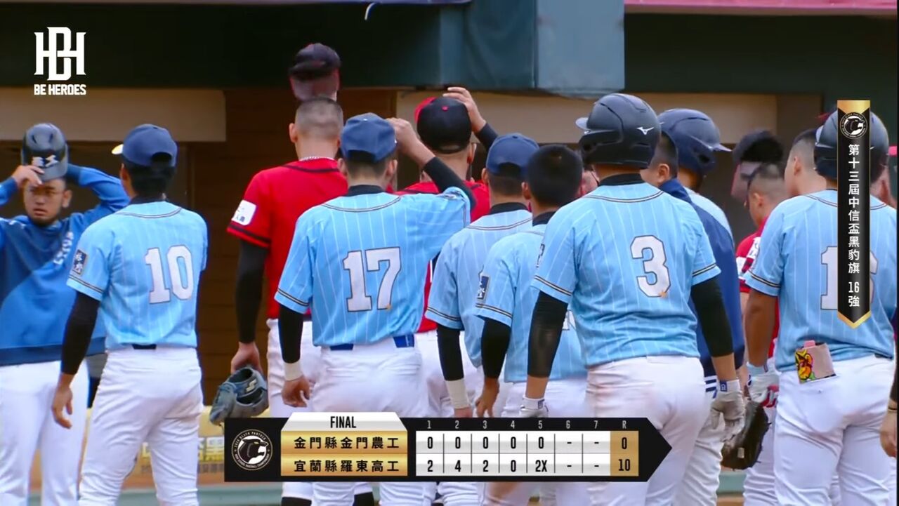中信盃黑豹旗16強賽今(21日)在三重棒球場開打,由本屆表現亮眼的金門農工對上實力堅強的羅東高工;羅東高工在首局就把握金門農工守備失誤先馳得點,第2局更展開猛烈攻勢,一舉奠定勝基,最終於5局10比0提前扣倒對手,順利挺進8強。