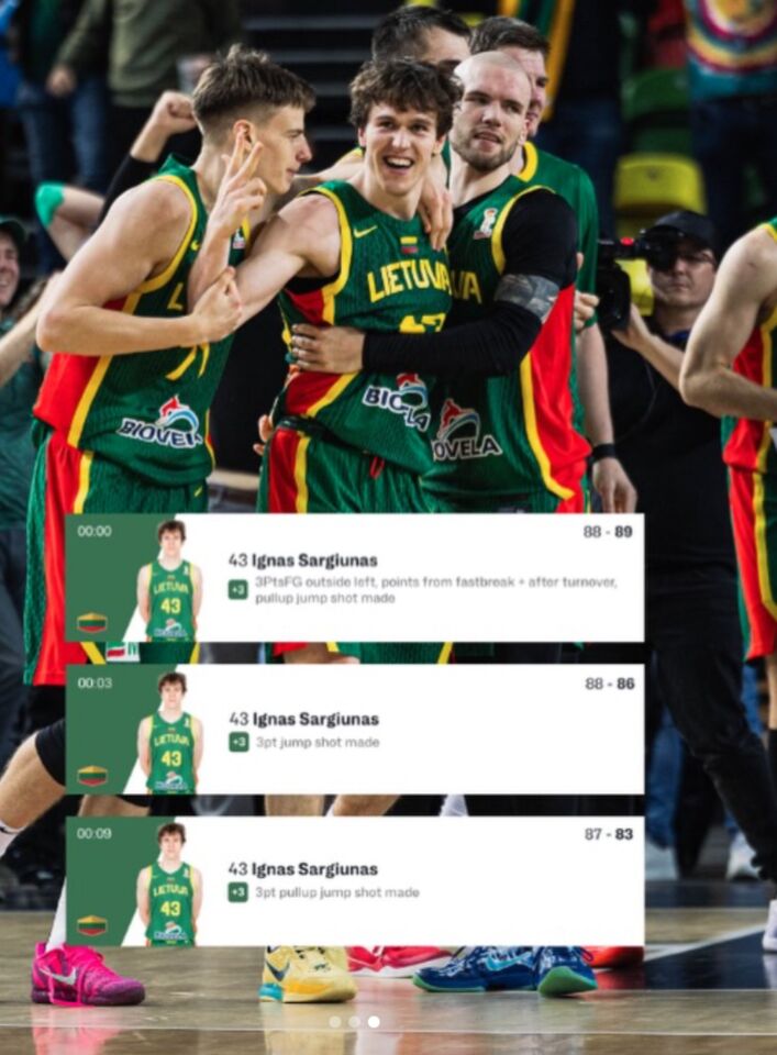 ▲9秒得9分,立陶宛神射薩古納斯寫不可思議逆轉勝。(圖/翻攝自FIBA IG)