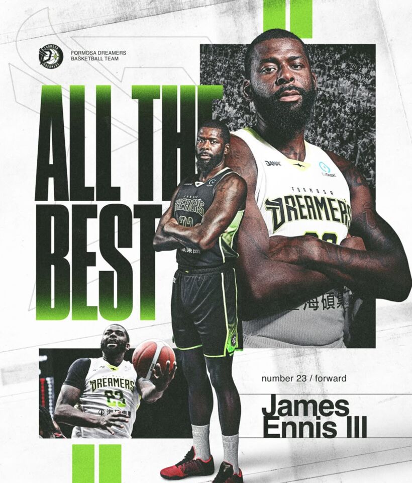 夢想家球團稍早在球隊社群發布恩尼斯離隊消息,也喊話祝福他未來一切安好。