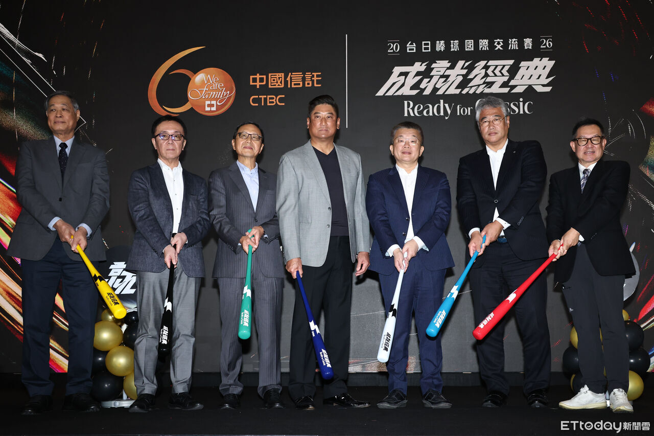 ▲ 2026台日棒球國際交流賽 賽事記者會,中職會長蔡其昌(右三)、中華棒協理事長辜仲諒(右四)。(圖/記者黃克翔攝)