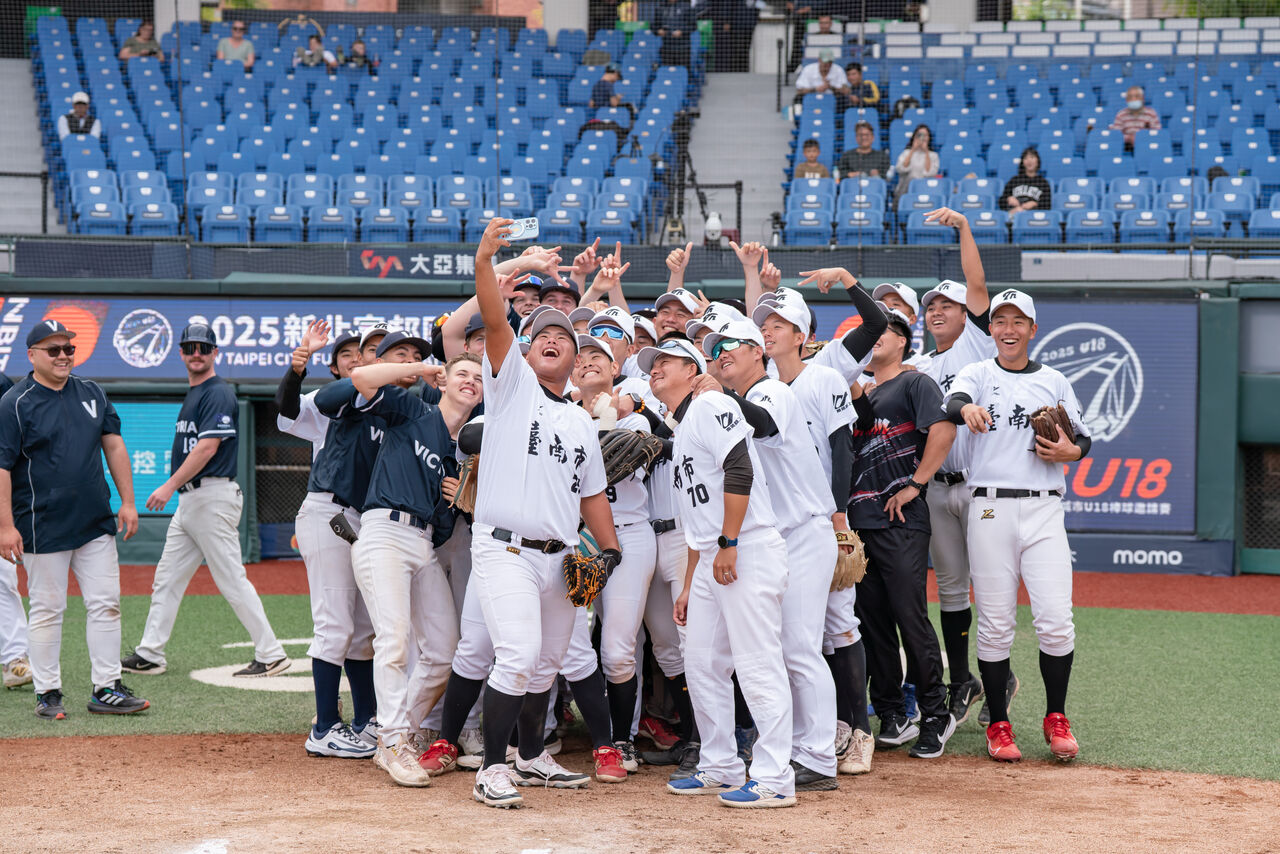 賽後兩隊合照時,還加碼拿出手機自拍,許峰穎再度開啟聊天模式,對著對方說:「MLB look you。」意思是未來在大聯盟想看到他們,希望他們聽得懂。
