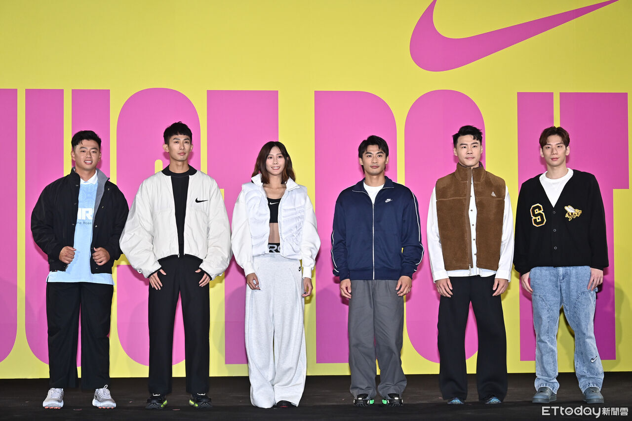 ▲鄭宗哲(左起)、周庭印、張博雅、楊勇緯、唐嘉鴻、王冠閎出席出席Nike Innovation Showcase I 科技解密展。(圖/記者李毓康攝)