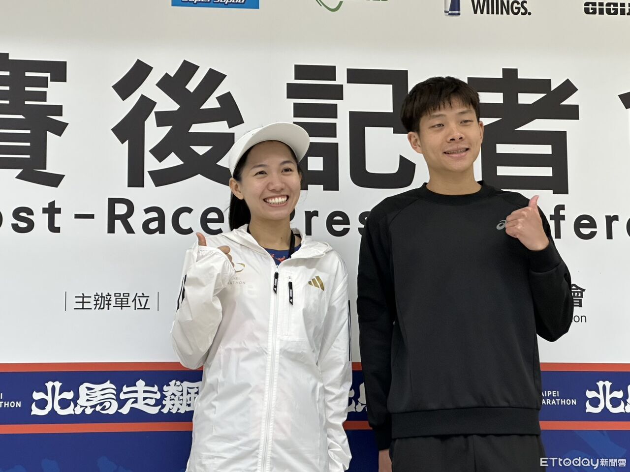 ▲2025台北馬拉松全馬國內組女子第一張芷瑄(左)與男子第一施育佐(右)。(圖/記者蔡厚瑄攝影)