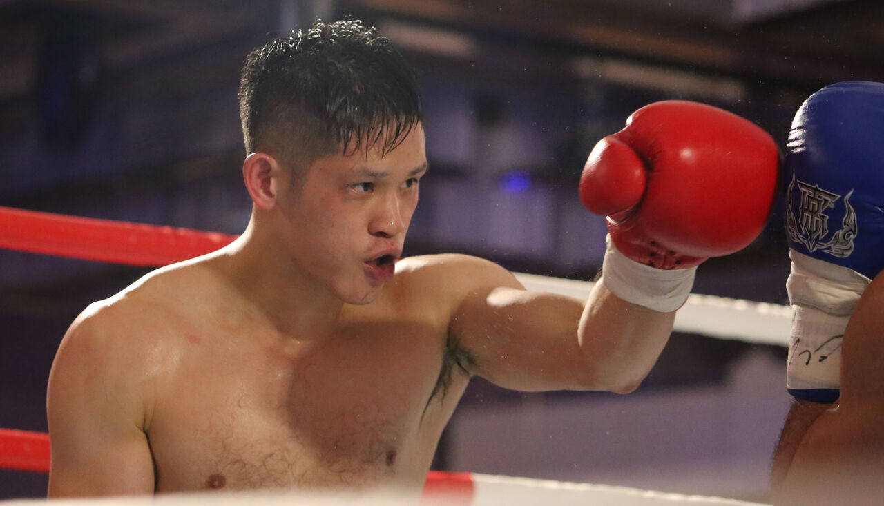 ▲男子壓軸賽由地主江奕宏出戰日本好手長岡波輝,睽違7年重返職業賽,雖未能把勝利留下,但仍獲得全場喝采。(圖/中華拳擊總會提供)