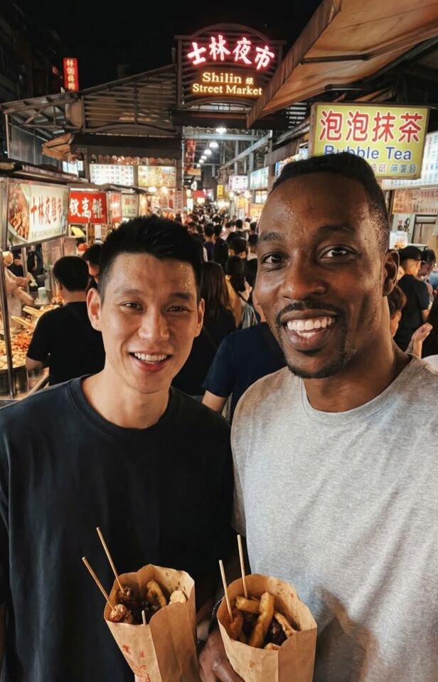 華裔人氣球星林書豪日前風光舉行7號球衣在新北國王正式榮退儀式,典禮上體壇、藝能界眾星雲集,親自現身或拍攝影片獻上祝福。就連林書豪昔日NBA時期明星隊友「魔獸」霍華德(Dwight Howard)也錄製影片,笑稱兩人應該攜手在台灣奪冠。霍華德隨後又在社群放上一堆兩人同遊台灣的AI合成圖,並喊話他們欠台灣球迷一場慈善賽事。