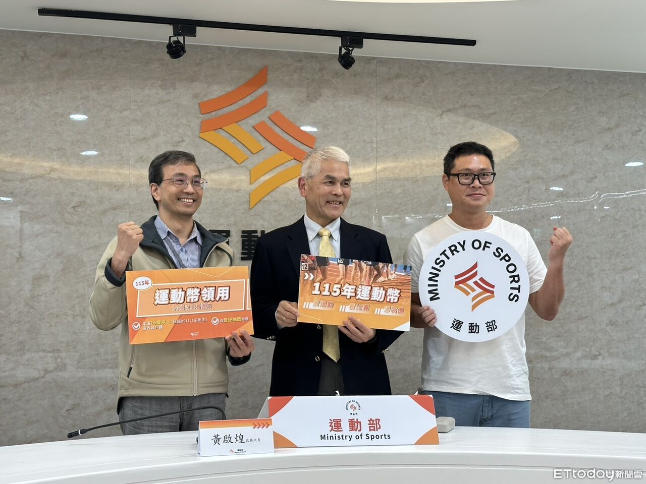 ▲運動部動部宣布自115年起將原本的「青春動滋券」轉型為「運動幣」。(左起運動部王詔民司長、黃啟煌政務次長、黃彥璋科長)。(圖/記者蔡厚瑄攝)