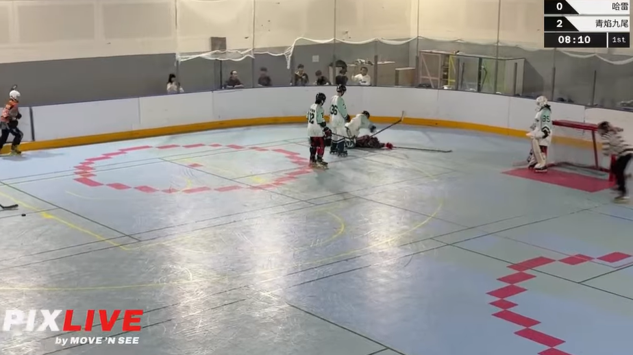▲哈雷隊球員(黑衣2號者)被毆後倒在冰場上久久無法起身。(圖/翻攝自YouTube@Yi-Der Wu)