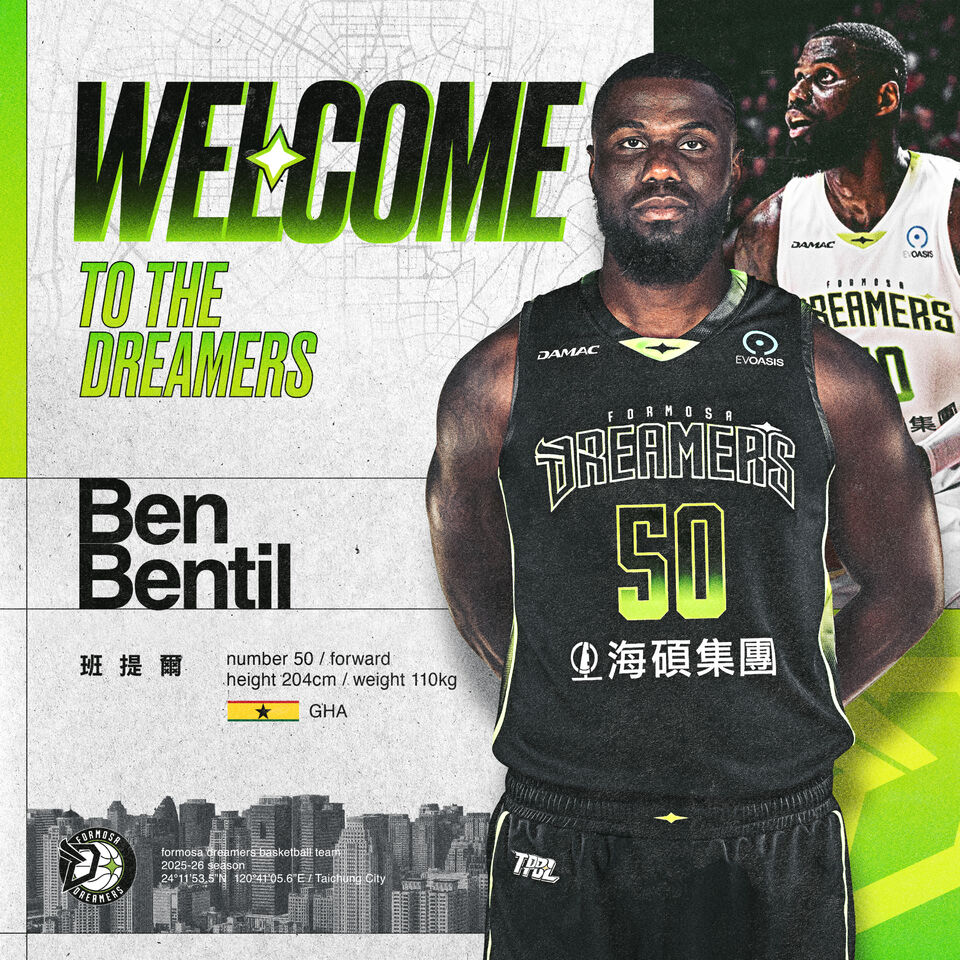 福爾摩沙夢想家6日做出洋將戰力補強,宣布將簽下簽下班・班提爾(Ben Bentil)。今年30歲的班提爾,身高204公分、體重110公斤,具備多國職業聯賽征戰經驗,生涯曾效力於美國、中國、法國、西班牙、希臘、義大利、塞爾維亞、日本、土耳其與以色列等地聯賽。