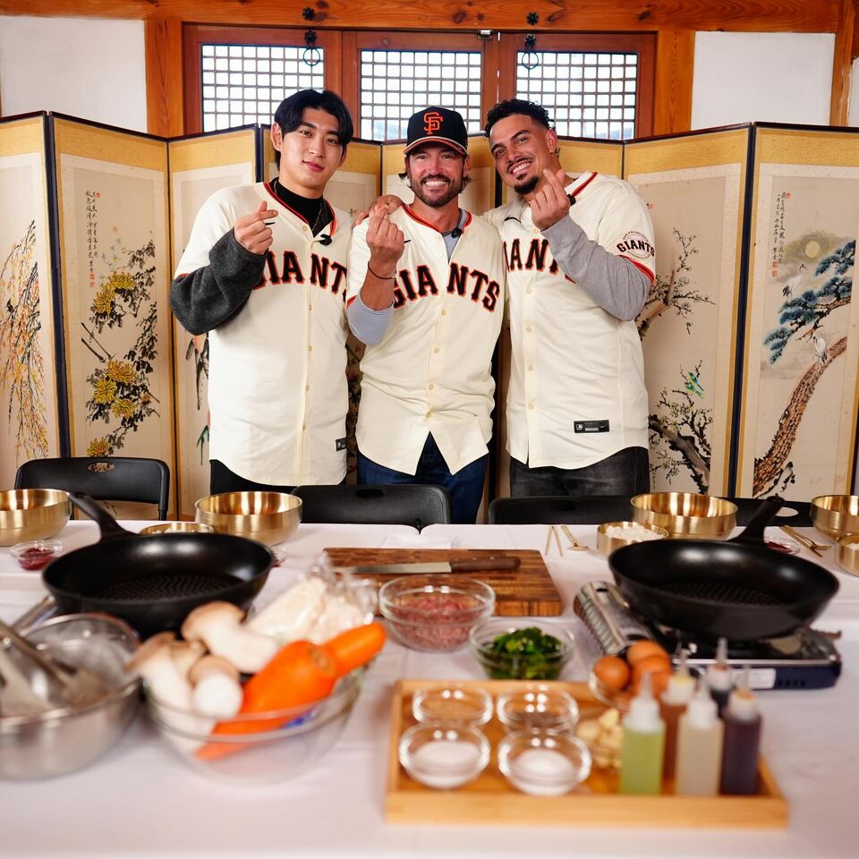 ▲李政厚帶舊金山巨人隊友遊韓,《黑白大廚》第一季主廚崔鉉碩同框。(圖/舊金山巨人官方IG)