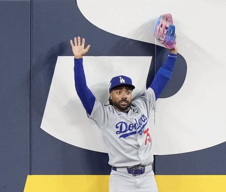 值得一提的是,迪恩在去年世界大賽第6戰上演關鍵「神判斷」。當時藍鳥於9局下半迎來關鍵得分契機。當時打者巴傑爾(Addison Barger)將球掃向中外野深處,飛球卡在全壘打牆護墊下方。負責守備的迪恩第一時間高舉雙手向裁判示意為死球,經確認後藍鳥未能進帳分數,道奇隨後靠著關鍵防守守住戰局,將系列賽延續至第7戰,最終順利完成封王。