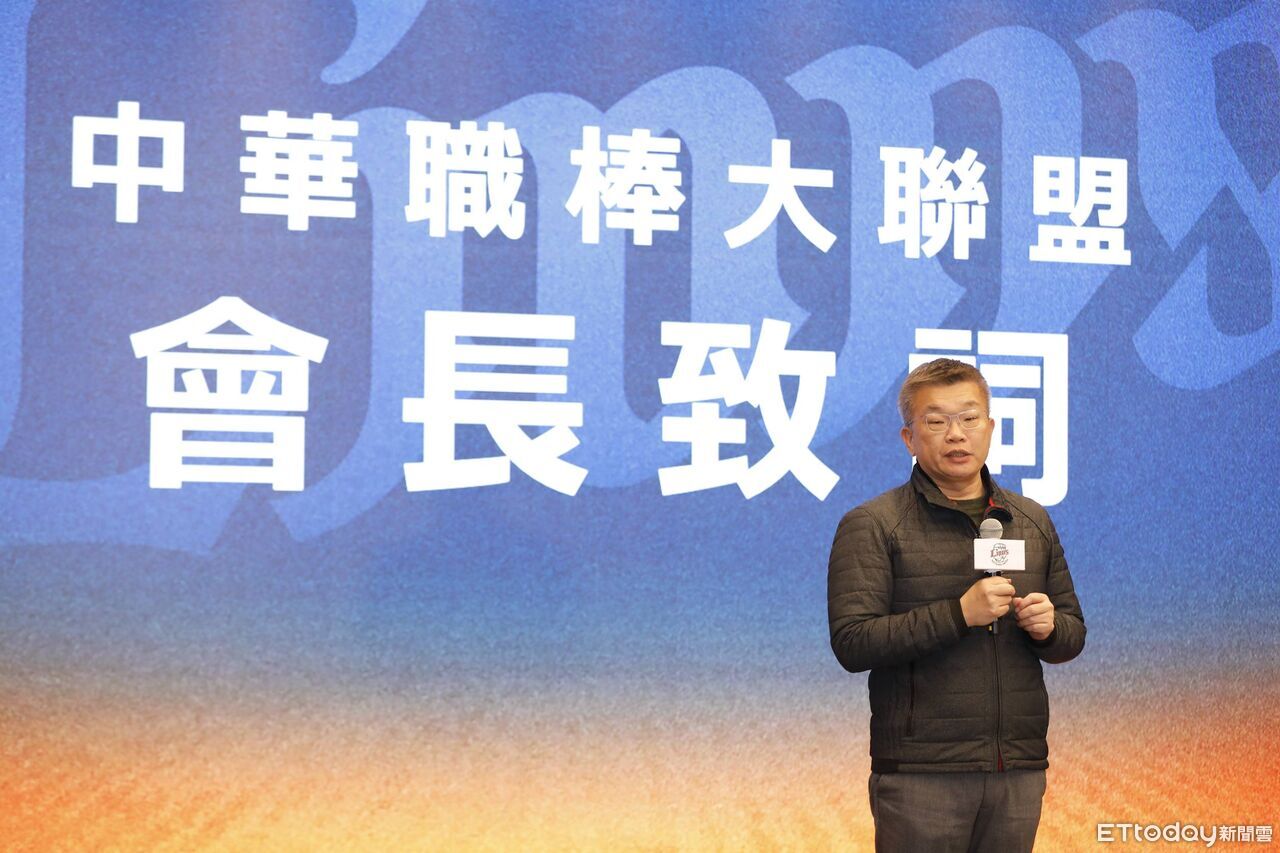 ▲中職會長蔡其昌為林安可加盟西武獅記者會致詞 。(圖/記者湯興漢攝)